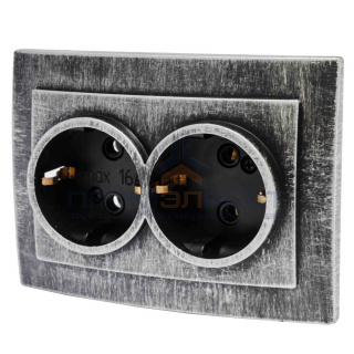 Розетка двухместная открытой установки РА 16-008, полистирол УХЛ4, 250В, 16А, IP20